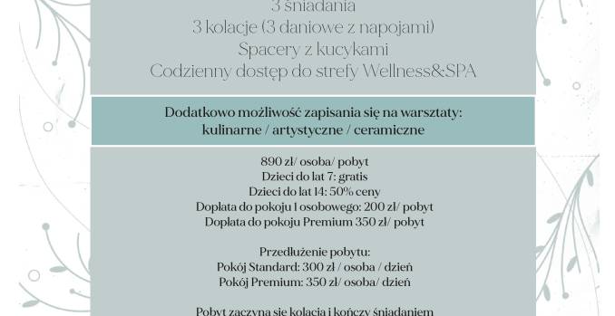 Pobyt zaczyna się kolacją i kończy śniadaniem