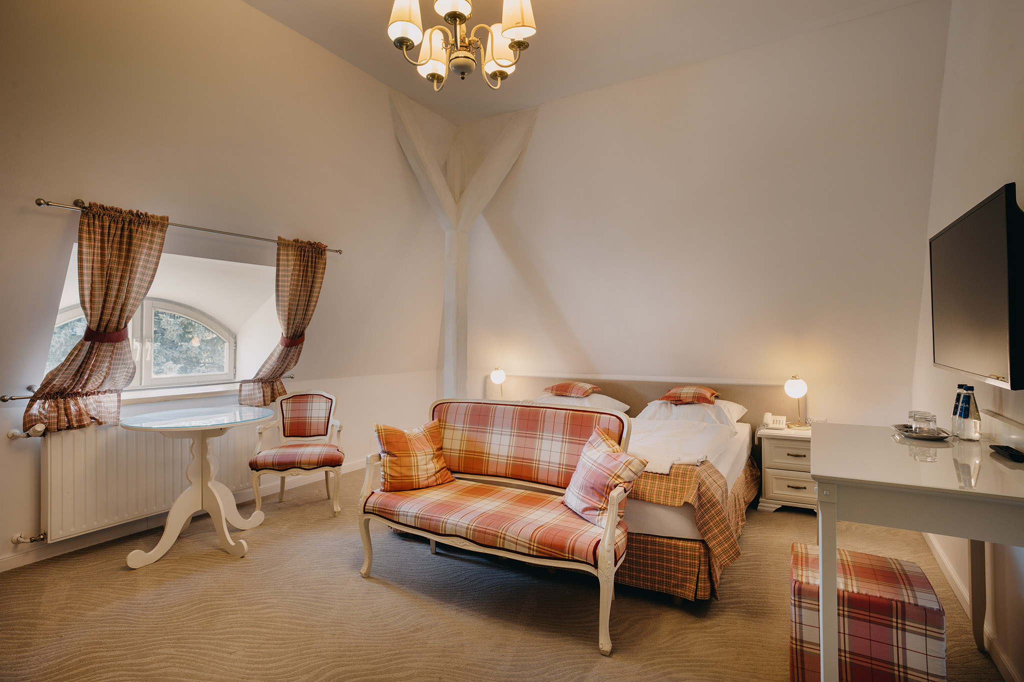 Posiadamy sześć pokoi typu Premium w Pałacu oraz dwa w Powozowni.